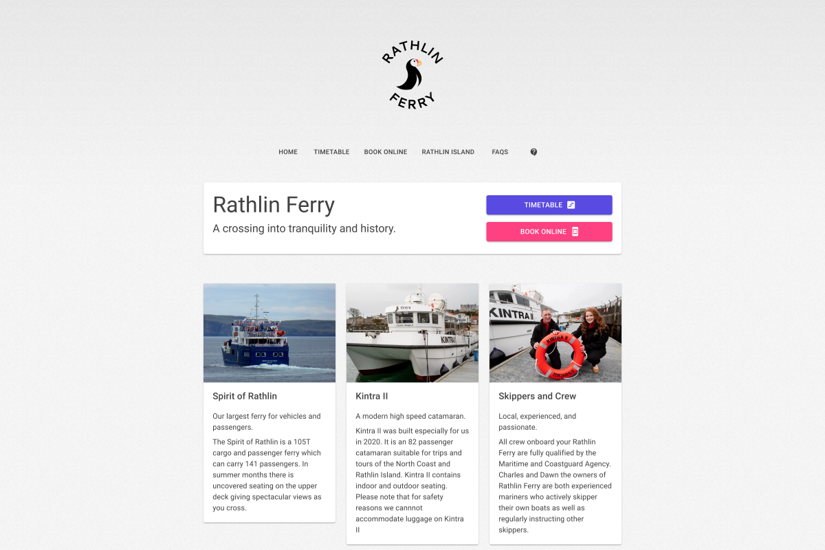 Paul McCormick, General Manager, Rathlin Ferry Rathlin Ferry have worked with Perfidious Albert for over a year to develop a web-based ticketing system with both front and back-end facilities and detailed database reporting. The ticketing system was built in tandem with a clear and detailed website. I have thoroughly enjoyed the development process and found Perfidious Albert effortless to deal with and found the support fantastic. The system has grown beyond what we thought possible with updates and development carried out quickly with great communication. We are excited for the future with Perfidious Albert and consider them crucial to the success of the business.